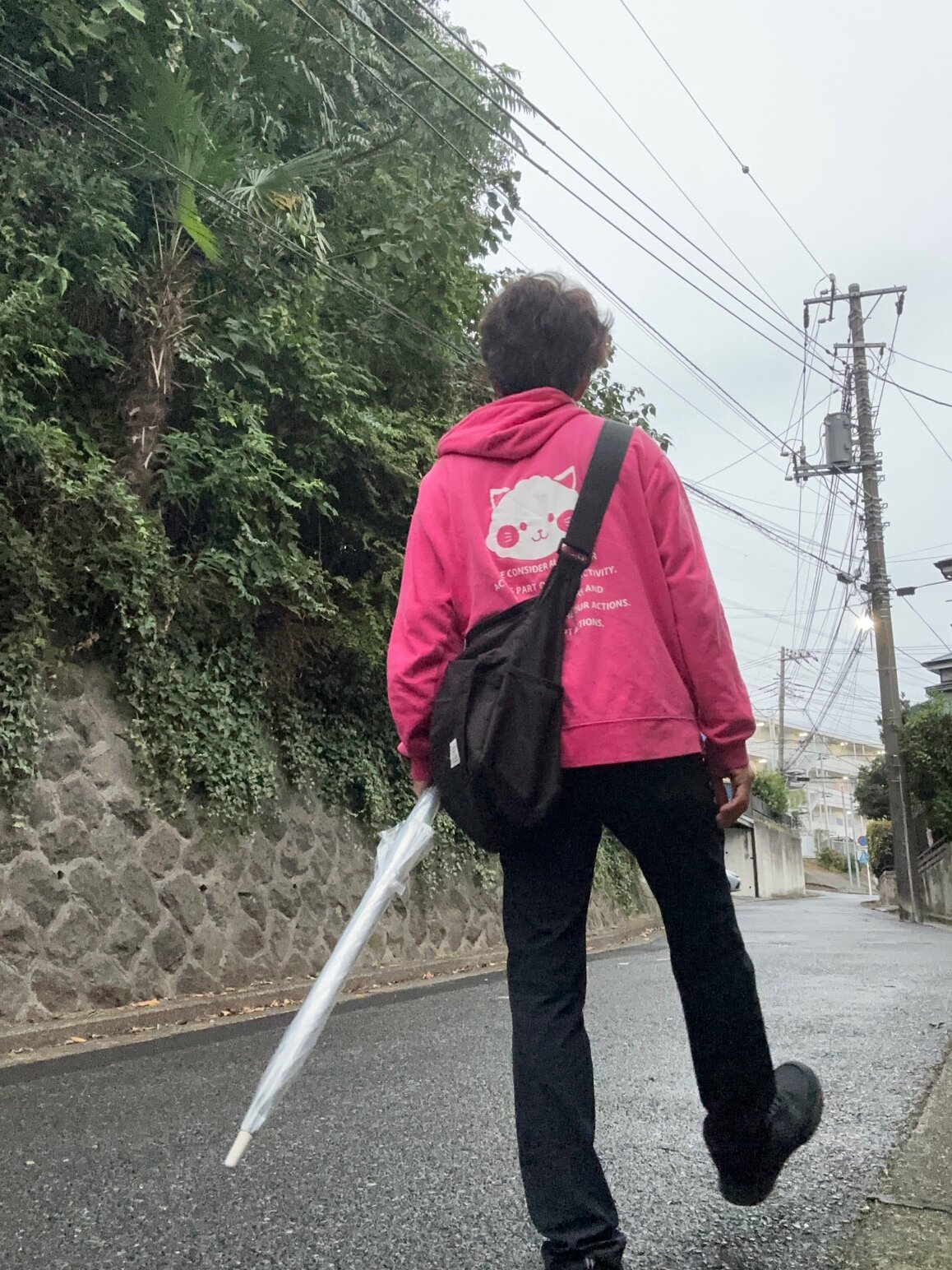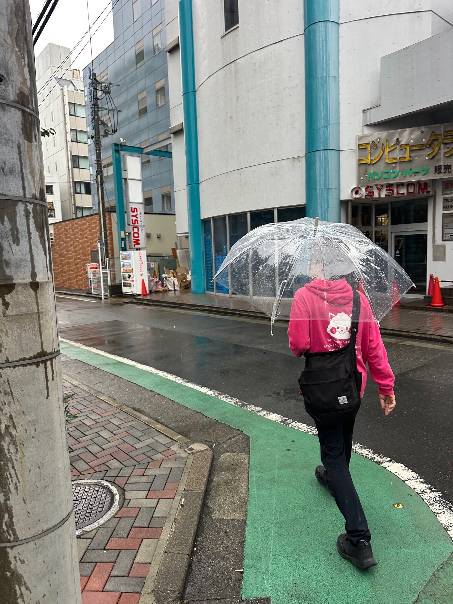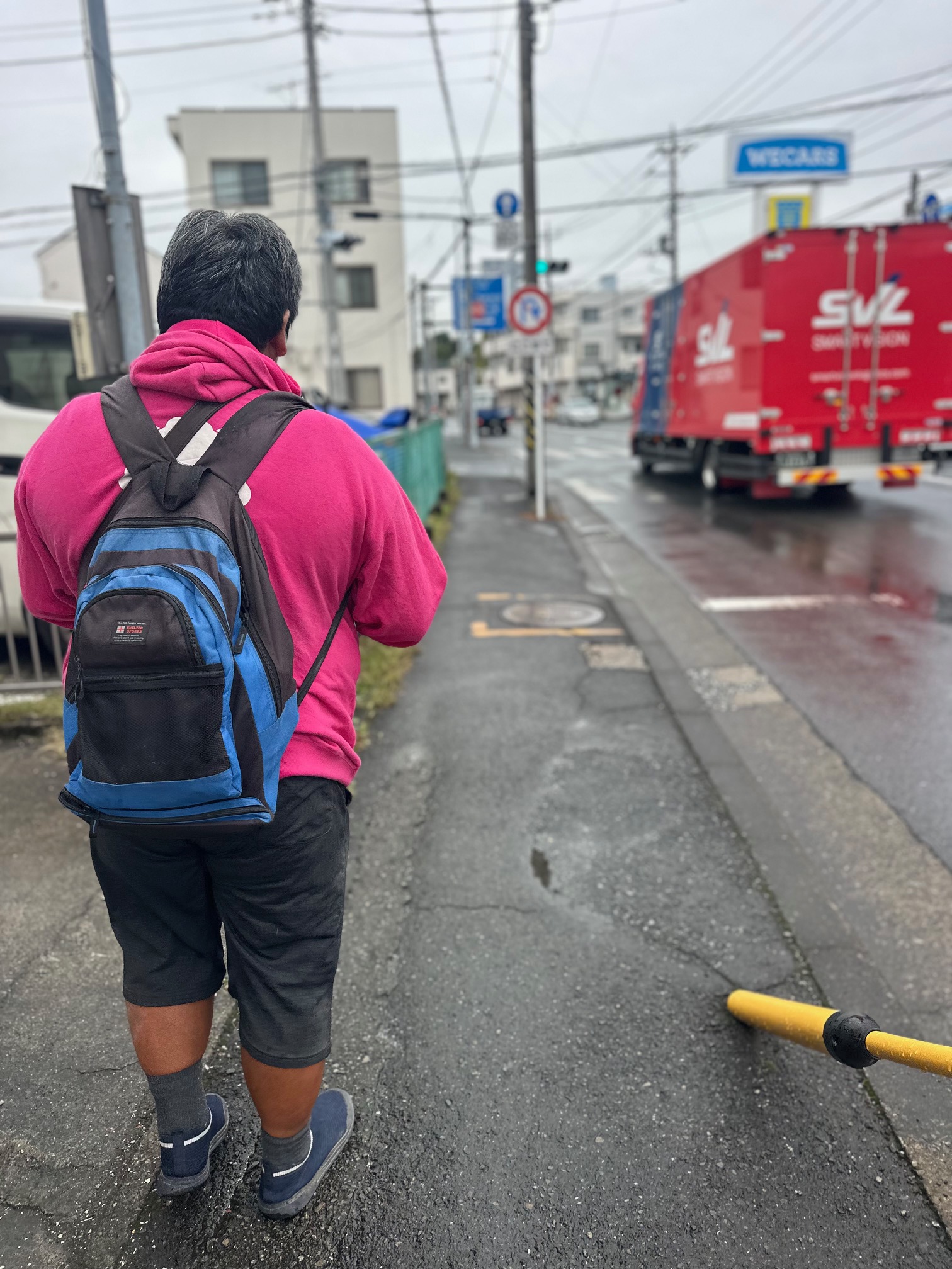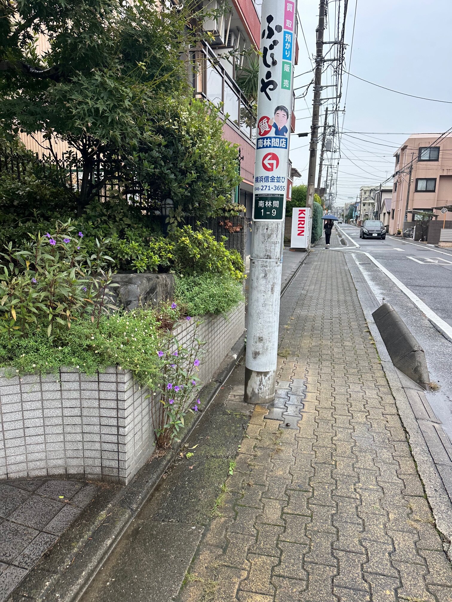 雨で道が濡れているので気を付けつつ