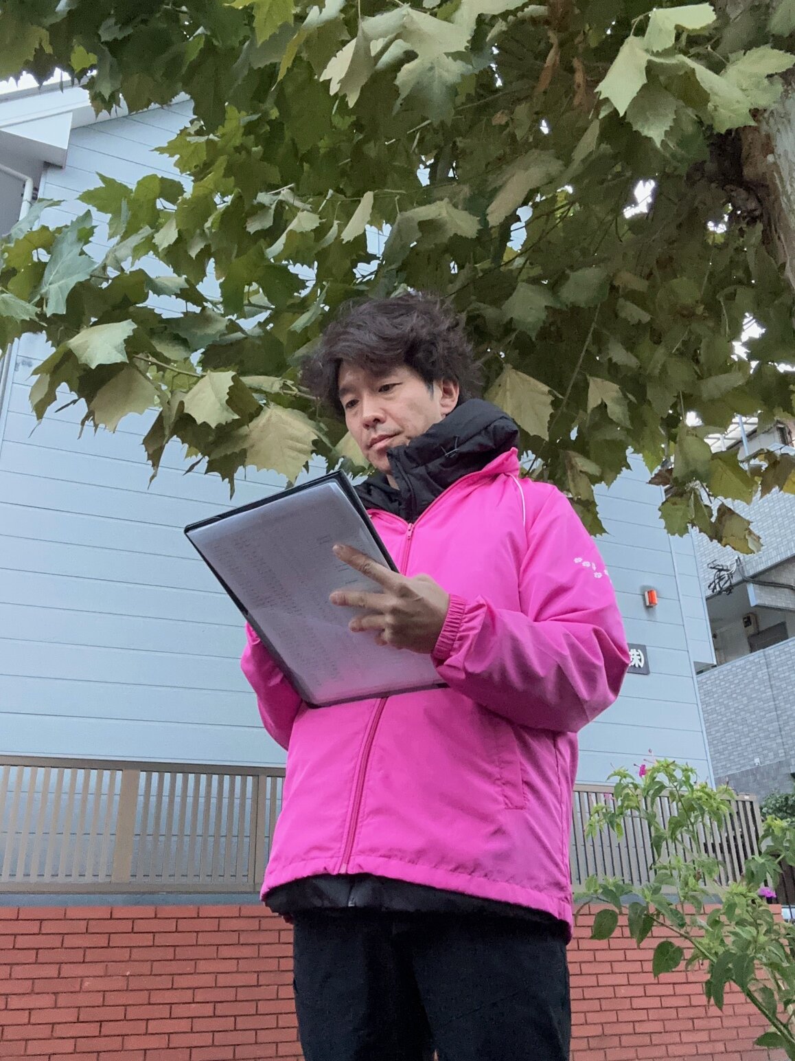 ⑨住民の付近で電話する