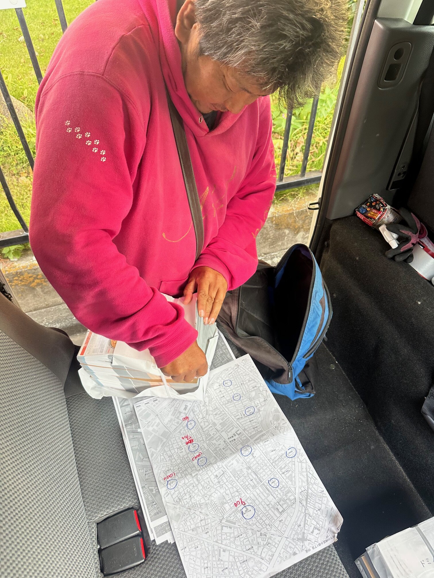 地図を確認し、効率よく配布していきます💪
