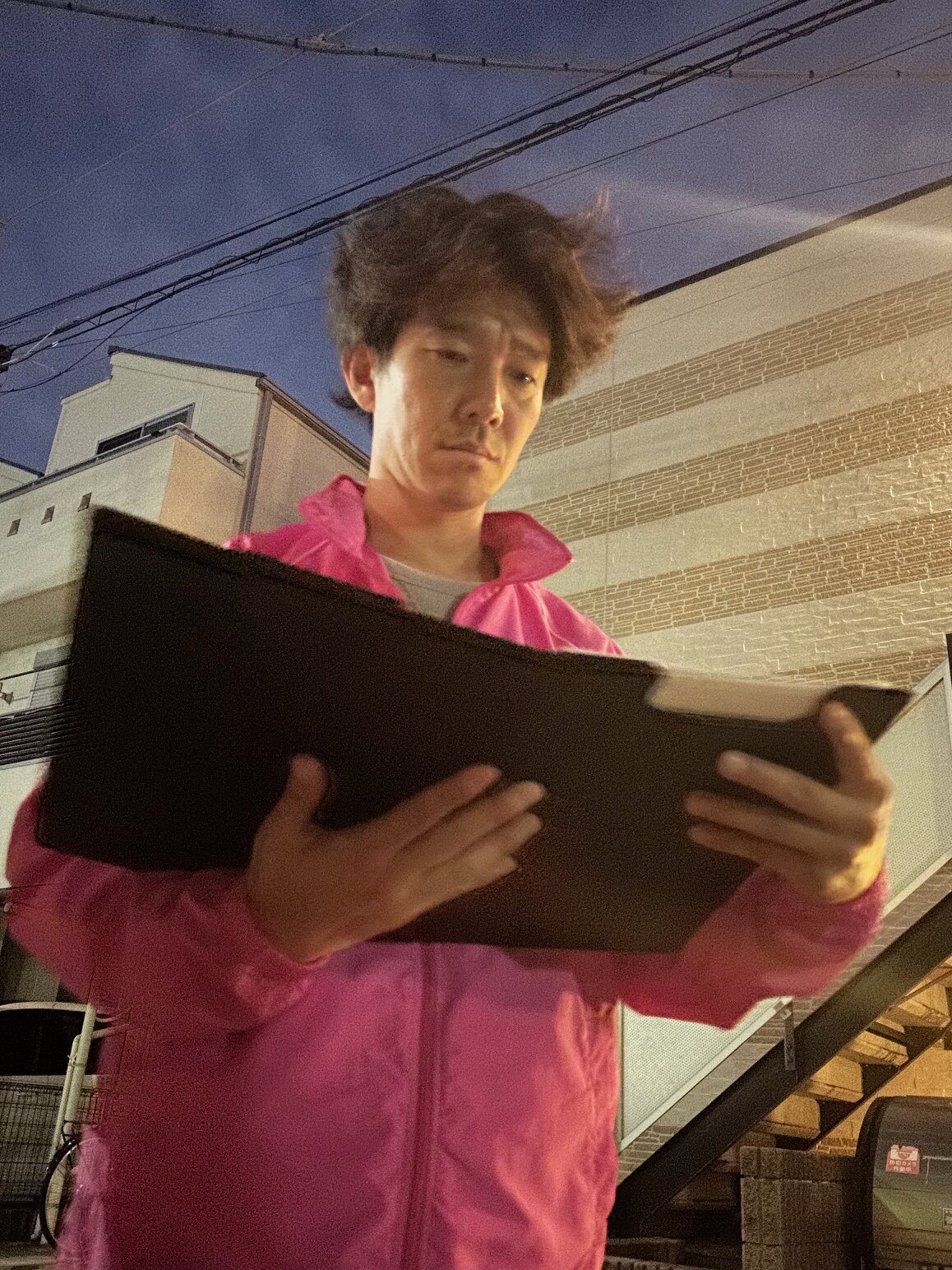 ⑨住民の付近で電話する
